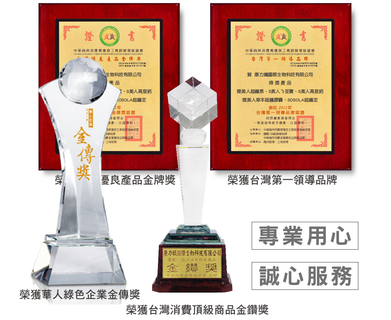 榮獲民國百年台灣消費頂級商品金鑽獎