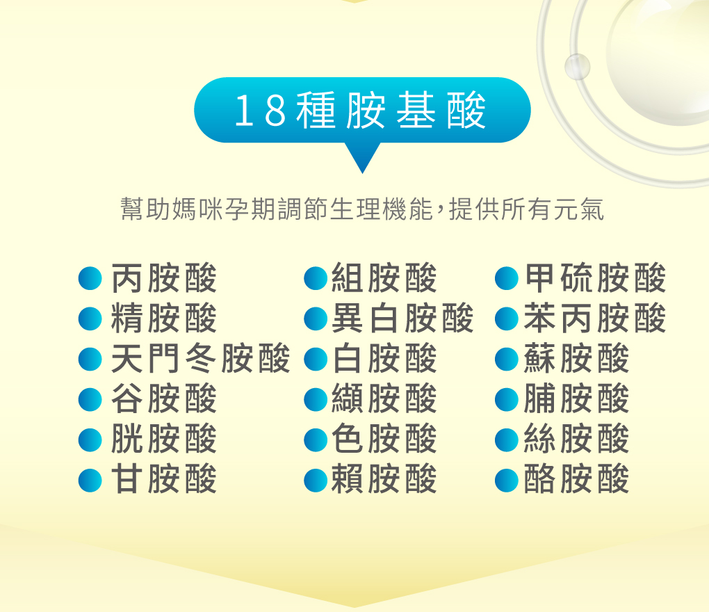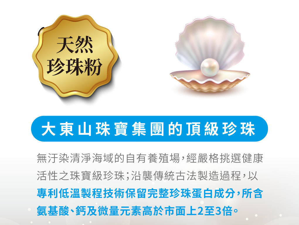 成分:初乳蛋白、卵磷脂、天然酵母B群、DHA(藻類萃取)、微奈米珍珠粉、燕窩萃取物、專利人蔘素食膠原蛋白、麥芽糊精、二氧化矽