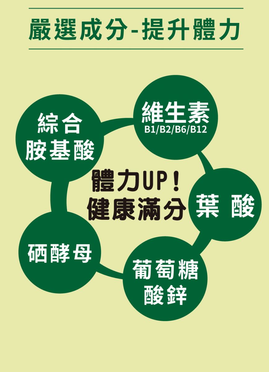 成分:純水、蔗糖、大棗濃縮汁、丙二醇、麥芽糖醇(甜味劑)、檸檬酸、檸檬酸鈉、葡萄糖酸鋅、肌醇、菸鹼醯胺、綜合胺基酸、維生素B2、維生素B6、維生素B1、葉酸、三氯化鉻、硒酵母、維生素B12